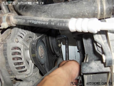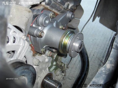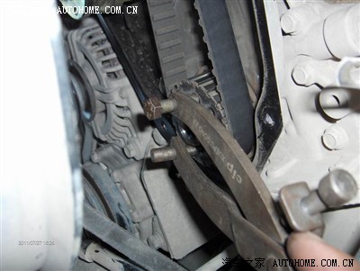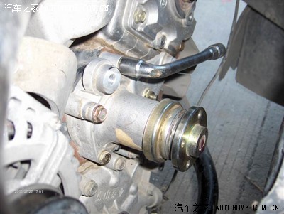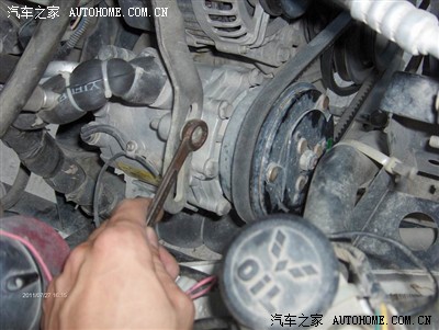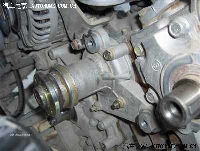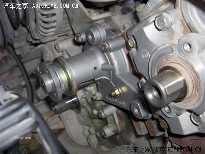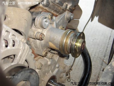 先拆掉水泵皮带轮的螺丝,再松皮带,要不就拆不了轮上的螺丝了