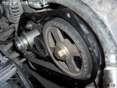 发动了,再次鸡动下下,发电机运转很平稳,可以先确定正时装的和原来是一样的(没有跳齿)当时皮带轮是在转,照出来的时候是静止的,水箱盖不要盖上,一直让他转,发动到水温到中间,也就是节温器打开的时候会看到水位下跌,这个时候就应该再加水了,这样加好了水,就可以确定水道中没有空气了,这也是排空气的一个方法(不过要在冷机的时候进行)