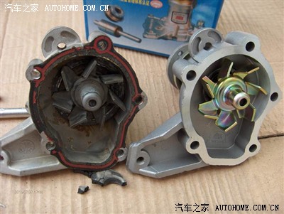 自己的五菱小货465发动机,最近皮带老是响,特别是晚上开灯转弯的时候,终于有时间检查了一下,换了皮带,顺便用手转了下水泵轮,发现好重,用手不是很容易转动,(初步怀疑轴承坏了)NND,我可还算是新车呀,买了一年了才跑了2万多公里了,而且最近又经常出远门,想想还是早些换掉为好,免的半路丢下我,还有可能抛锚,下定决心以后就从配件店买来了重庆水泵,感觉质量还不错,下午大概3点多的时候没事情就开始动手更换,全过程都自己一个人,又拍照又修车,拆掉发电机皮带,水泵皮带轮,空调皮带,正时皮带盒盖,正时皮带等,唉,拆的东西还真是不少,水泵固定就5颗螺丝,最难受的就是那垫子,太难刮了,费了半个多小时才弄好,为了心里踏实还是加了一点红垫胶上面,一次成功最好,实在是麻烦啊,好了,装好新水泵后基本就完成一大半了,剩下的怎么拆就怎么装了,复原完毕哈哈,启动之前检查一遍看有没有落下的东西,然后就是加水,启动车,刚启动着的时候好像还有些噪音,估计是水还没有流过去吧,一会噪音就基本消失了,着了大约十来分钟后补水几次后盖上水箱盖,OK 了哈哈。