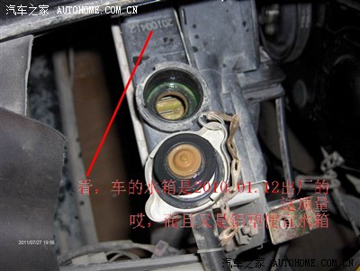 装好了皮带就一定要记住要加水了,。NND,2010年的车陪的是最便宜的吕塑水箱,破了不可以补的,貌似是一次性的,坏了只能换了,上图中标错了,是2010.04.12出厂的(我03年的是全铜的)NND纳米技术