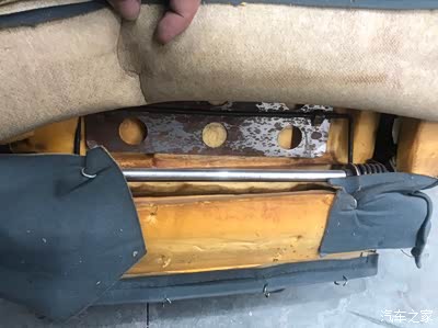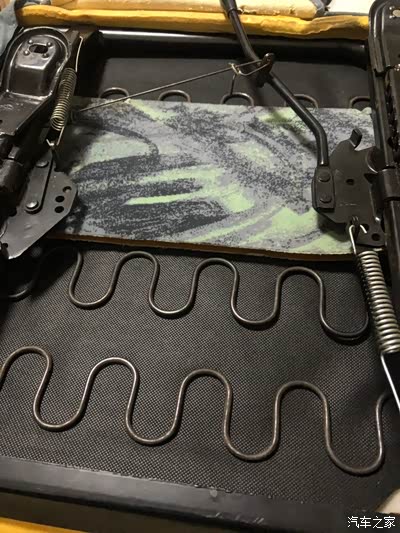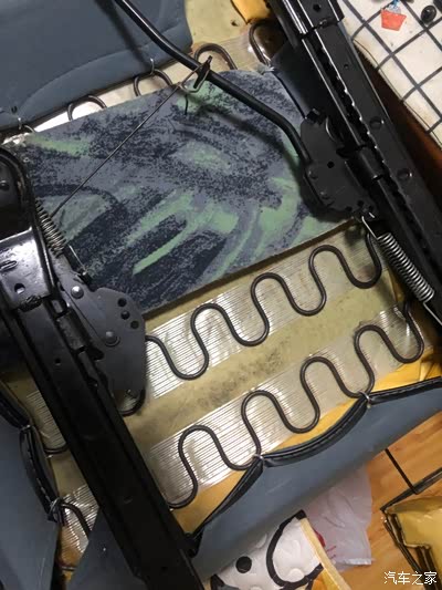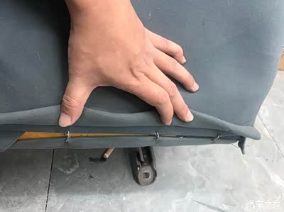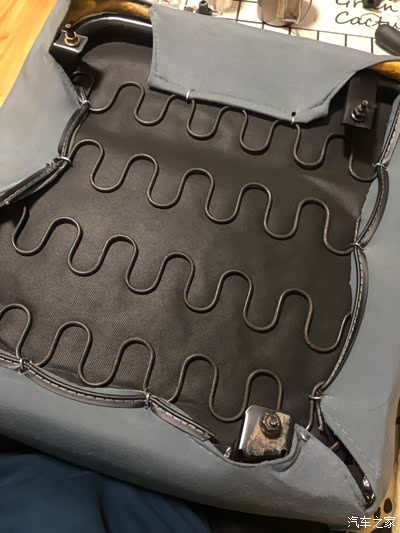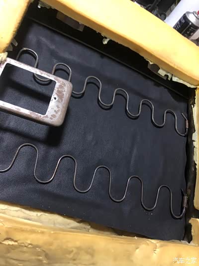 座椅下面海绵容易被弹簧戳破,就贴上纤维胶带给拉一下