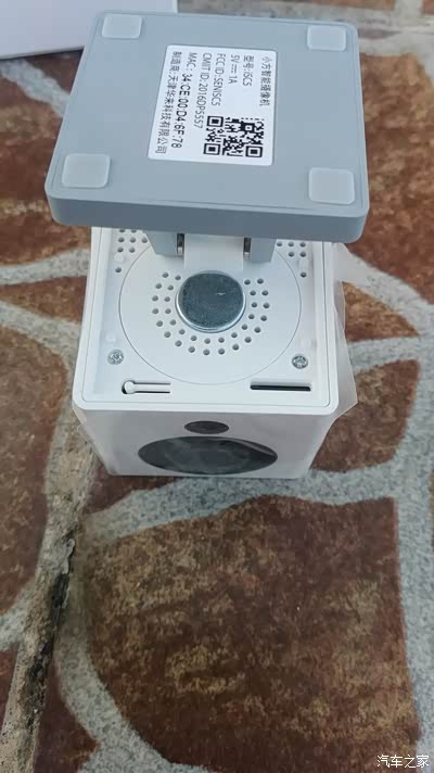机身正面,小方智能摄像机采用了4片全玻镜头,2.8焦距,110度广角,1/2.7''超大CMOS图像传感器,带来1920x1080全高清分辨率,F2.0大光圈镜头搭配IR-CUT自动双滤镜,最大可视距离可达9m。机身背面是大尺寸的扬声器,可以实现双向语音通话功能。USB供电接口、USB数据接口以及一盏工作状态指示灯。底部是产品标识,还贴心的给出了小方的mac地址。
