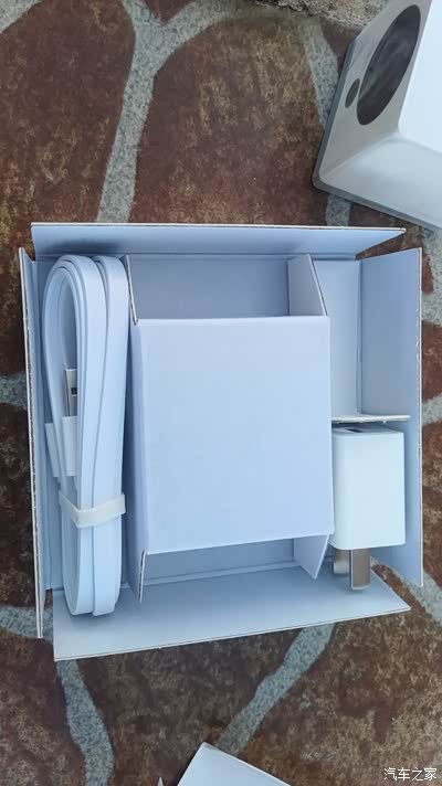打开包装,首先印入眼帘的是小方的主体,小方底下是电源适配器,数据线以及卡针,说明书在包装盒上部。数据线有1.5米长,基本够用了,电源适配器是5v|2A的。