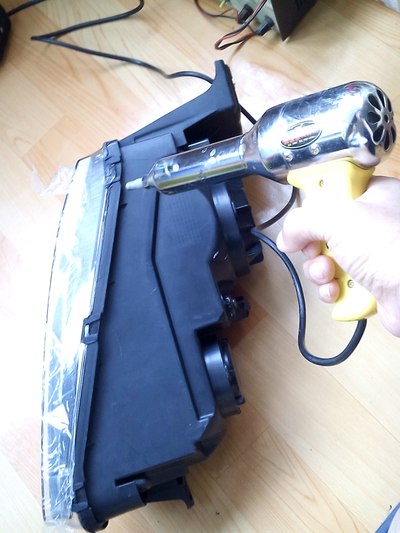 用塑料焊枪局部加热3-5分钟 不要停留在一处 否则烤化了