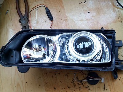 开近光 和远光 天使眼自动熄灭 我没有把远光灯泡连接 有透镜就够用了 没必要再接远光灯 还能节省一些耗电