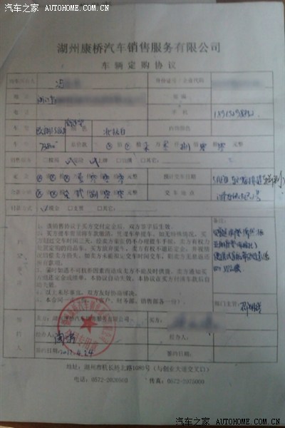 最后晒一下我的购车协议,从订车到提车也就一周的时间,速度还是挺快的,我会把用车的感受陆续在论坛里和大家分享。