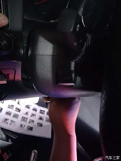 电接好以后,因为要打孔,所以先选择好车内开关安装的位置,不过不用考虑打孔会很难看什么的,因为只是一个指甲盖那么大一个眼而已,鉴于咱们科帕奇不论新旧款式、不论高低配都不带电动尾门,所以原车没有预留位置,这样就需要自己三思咯,最终觉得按在这个位置好,因为方便后面走线,转向灯杆子下面那块塑料板里面几乎是空的什么也没有,打开调整方向盘的拉手就可以把手伸进去走线、接线了,很方便。