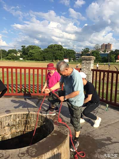 老爸的井中打水的技术,周围人都挑大拇指,这个就是著名的红井,当年苏维埃吃水就是这口井,后面还有个碑,吃水不忘挖井人,