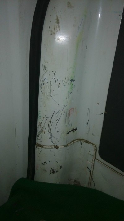 满目疮痍的后立柱 座位没固定 经常平放着 就砸出来坑 心疼啊