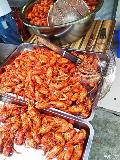 风景可待露营时慢慢欣赏,先找个地吃龙虾是正事。