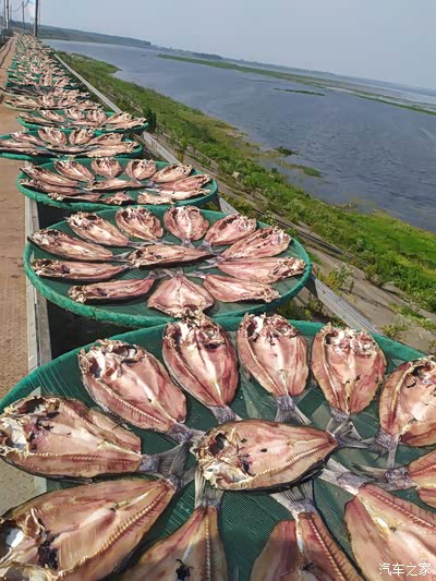 沿堤再走六千步,空中不时飘来三个字:风干鱼。不去看看,平息不了这颗好奇的心。随意走进一家店铺,老板热情地接待了我们,介绍了不同鱼种以及制作工艺,还有后续的烹饪方法。但是需要冷冻,车上冰箱空间有限,稍买点试试,如果对味,可日后快递。