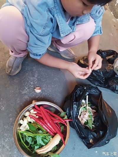 吃过中餐,用行车途中烧好的热水,洗好头发,开始剥虾洗虾。