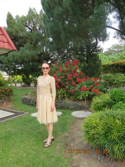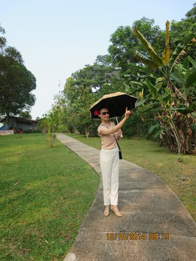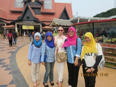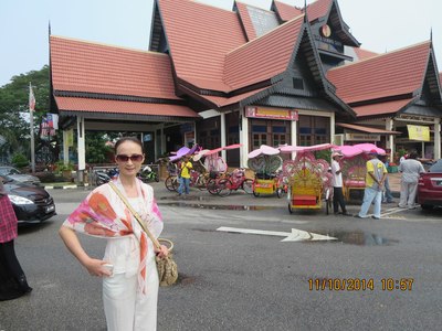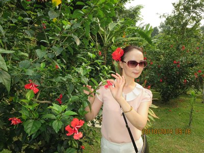 夫人在马来西亚国花前(头饰就是木槿,又称大红花)