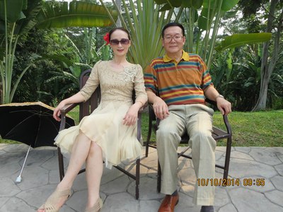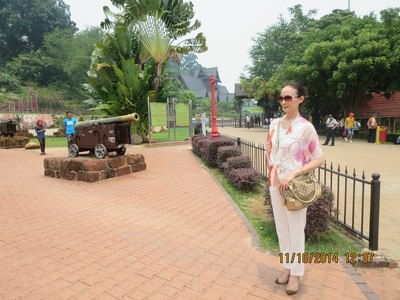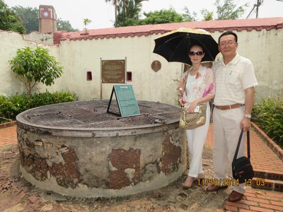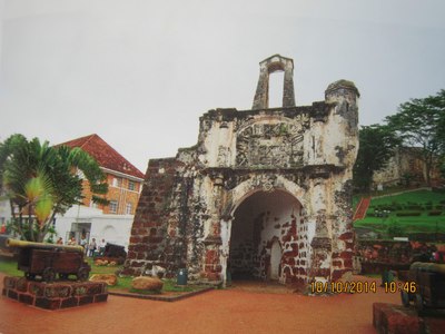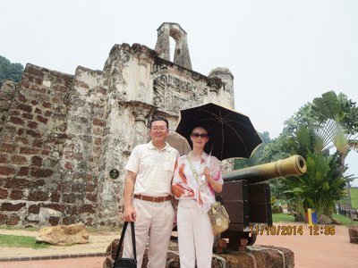 我和夫人在马六甲古炮台留影