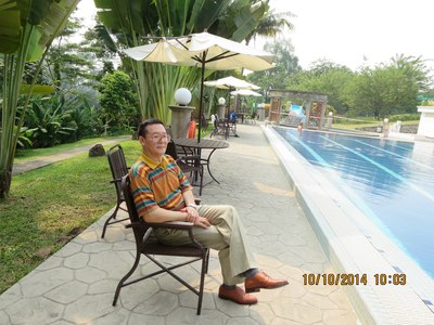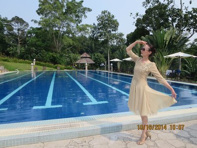 我在游泳池旁歇息