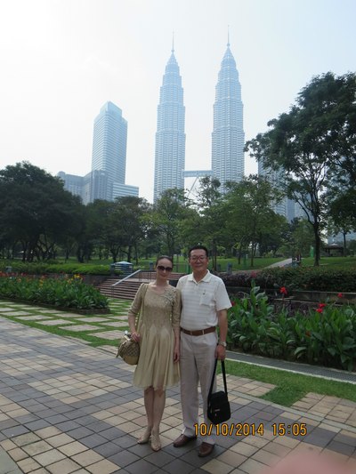 我和夫人在吉隆坡(身后是地标建筑—双塔)