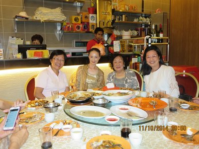 离别晚宴上,夫人与王太太、陈太太及王董事长大媳妇合影