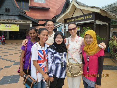 我和夫人与华人、马来人、印度人少女合影