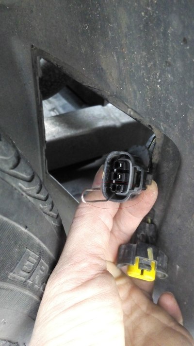 拆下示宽灯后挡板、拔下示宽灯插座,用回形针捅空脚封堵橡胶