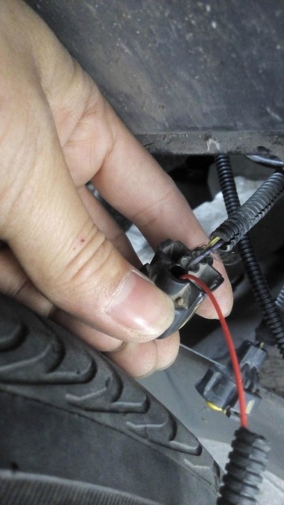 把接插件反过来,发现只有两根线,另外一个孔被红色橡胶堵住了。意思灯泡里还有根灯丝是不亮的,你知道了怎么做了吧?就是加根线到红色橡胶那个孔里,记得DIY个铜片,然后把这根线接到发动机保险盒里的油泵继电器上即可。还不赶快试试 ![]()