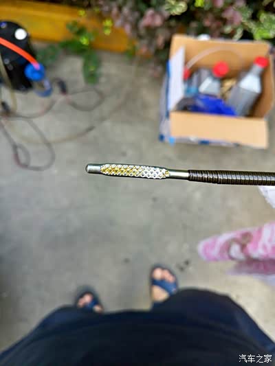 2.空气泵抽油需要特别注意油管从机油尺的洞里插入特别不好插,5MM的管子需要弄直后插入(最好用里面带的细铁丝穿进管子然后插),实在不行见下图,插入长度应该和机油尺长度一样,不然油抽不出来,切记!