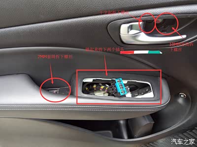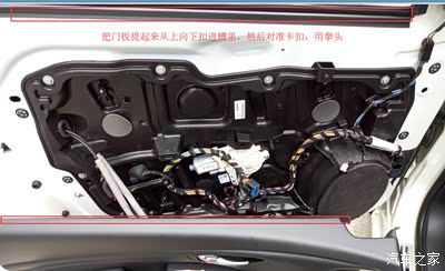 主要说下要注意的地方:拆装门板,最好把窗户放到底,装回去的时候玻璃一定要放下来,因为门板是斜的,玻璃那条有个槽,门板从上向下插进去以后再把卡扣都对准了用拳头把卡扣都砸进去,就不会有缝隙,可完美还原,反之门板肯定装不好- -