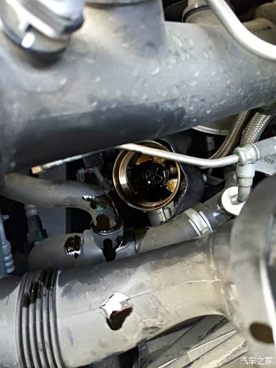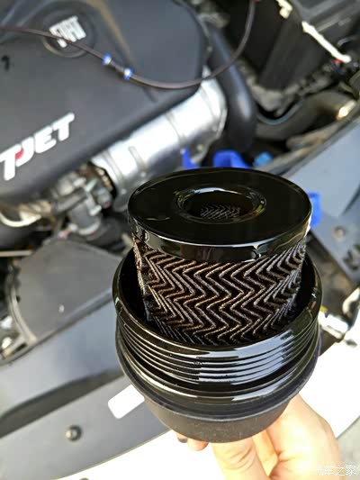 然后用套筒拆机滤,很容易就拧开了,手大的朋友可能费点事弄出来,但应该没问题。放心机滤不会掉出来,里面有卡子。记得把里面的废油也抽一下。