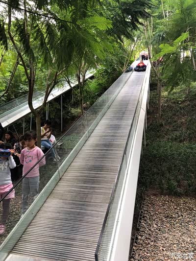 然后我们先去的网园,境园,爬山上的木园,然后去沙滩园,艺园。我来总结一下园区布置,进门的右手边就是镜园,镜园往上走就是网园,是第一个孩子们的天堂,网园再往山上走就是木园,第二个孩子们游玩地,不过道路真的就是爬山,推婴儿车去的就不推荐了。木园去沙滩园的路上有彩虹网,谜洞,索桥,最长滑梯,沙滩园是红色的沙子,也是孩子们聚集的地方,挨着就是艺园,下来就是水网,走完一圈水网要一个小时,真的好累。