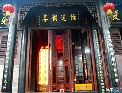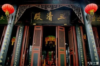 来到山脚,首先看到的是天慈宫。天慈宫占地4500平方米,正中立天慈殿,号为老君山“老子第一殿”,供奉神柱老君像,据说,这尊老君像已有一千多年了。左右供奉关圣帝君和文财神铜像。