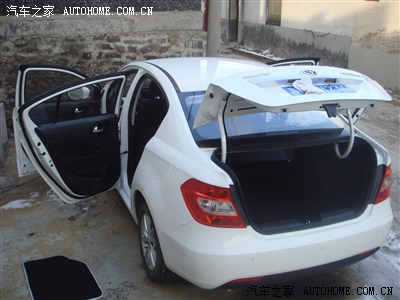 从学车到买车差不多折腾了整一年了!从考出来科目2(五月份),就开始考察车了!我的第一个定位:必须国产的!第二个定位:不能太大了(居住的地方街道有点窄车多人乱)!第三个定位:也不能太小了(面子太掉价,哈哈!虚荣作怪啊)!第四个定位:车的配置必须要高配的!第五个定位:发动机能耗必须是比较低的!好了!就这样开始了选车!一开始也是看好了中华的品牌,但是都没有合适的!就转到了奇瑞品牌经过了比较,选择了风云2三厢的比较理想了!就这样每天都在风云2的论坛里面溜一圈!由于驾照的原因和风2要改款在新老款之间纠结着,就一直没有下手!直到11月了,看看天气是越来越冷了!真是有点急了!偶然的一天看到了有人介绍中华H230,就来到了咱们这个论坛了解情况。一看不要紧从此就着了迷!就这样在驾照还没有到手呢就在11月3日下了定金H230手精白。当时车行的说这个白的不好定啊。要等一个月到45天!就这样接上了前面的话了!哈哈!殊途同归!中华起又是中华归啊!有点命该如此!不再啰嗦了!再次上图:
