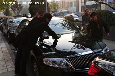 志愿者擦拭车辆