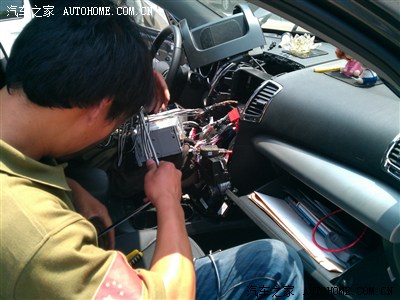 具体的拆装过程我没拍得很仔细,因为论坛很多前辈都已经拍过了,现在有经验的改装店改装大索都没问题,这里要说的是,以前论坛上的一些朋友改装音响,基本上音频线都从走了一遍,对原车线路破坏较大,基本上要破坏原车6路线路,我这次改装基本没动原车线路,只是在主机音频输出的部分使用了两个分频盒,用以连接功放和原车喇叭线路,这样的好处是,将来出现问题好查找,对原车线路不破坏,音量和音效调节还和以前一样直接在主机上就可以完成。