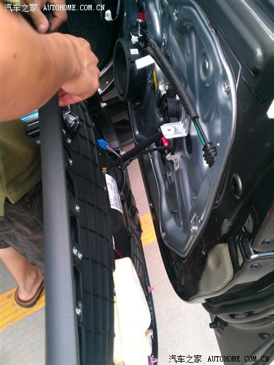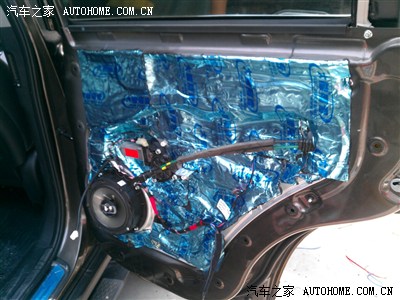 3.局部隔音处理,本人不喜欢把自己的新车拆解的面目全非,毕竟是自己的宝贝,看着心疼,再者,索兰托的密封隔音性尚可,所以就局部加强一下隔音,反正改音响要拆门,索性一次做了,免得将来重复施工。