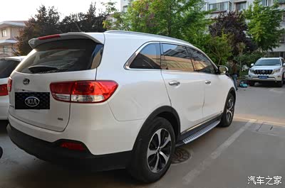 不能免俗的选车过程,第一辆车是东风悦达起亚的赛拉图,买赛拉图也是偶然,想当初2006年去4S看别克凯越的旅行版,和老婆骑着摩托车去的,进门后销售爱答不理的,直接跟老婆扭头就走了,在回家的路上看到路边停了一辆宝石蓝的赛拉图,说实话那时候我也不知道起亚的牌子,看着挺顺眼就停车围着那车转了好几圈,对车的外观都比较满意,然后回家上网才查到那是什么牌子的车,然后就是逛论坛,了解车的各项配置,正好有人发团购的帖子,加入团购,购买了人生第一辆车,第一辆车到买了大索后卖掉陪了近10个年头,坏了一根开门拉线,别的都是正常保养和更换配件,让我对起亚的质量和品质有了很好的印象。下面进入选大索的过程,由于开始并没有下定决心换车,所以断断续续的看了两年多车,因为想换辆大点的车,选定MPV或SUV,先试驾的是大众的途安,被媳妇直接PASS,看着像个大面包,后来由于单位项目买车,领导定的买普拉多,本地的丰田和马自达是一个老板,去看普拉多的时候我见到了马自达8,外观内饰价格等都很满意,但放弃的原因大家都明白,所以接下来看的车都跟卫生巾国没有关系。对大索的关注是从13款开始的,也试驾过,但当时由于刚买房子加媳妇生孩子,换车的事情就搁下了,直到15款大索上市,又勾起了换车的欲望。于是又开始看车,媳妇同事有买道奇酷威的,媳妇也比较喜欢,于是去4s看车,试驾,对于其内饰我是非常不喜欢,而且26万买两驱的还是接受不了,接下来直接去了进口起亚4s,媳妇一眼就喜欢上了大索(正中我下怀,呵呵),从外观到内饰媳妇很是满意,基本就确定了换大索,那是去年10月份的事情了,当时由于部分资金没有到位,又不想贷款于是就等资金到位,在这期间虽然又去看了新胜达和现代的进口格瑞,但基本没有动摇买大索的决心。对于断轴的锐界和10年前销售爱答不理留下阴影的别克昂科威直接没去看。今年春节后资金到位,跟媳妇一商量买车去,由于济南就只有两家4s,开始谈判价格基本就是现金2万,我的心理价位是现金3w,当时都是奔着汽油精英版去的,要5座,媳妇想要香槟金的,白色也可以考虑,两家店都没有现车,只有黑色的和红色的,要不就是柴油,要不就是7座,有家店有个白色定制汽油5座,后来一想除了多出来的气囊别的那些配置我们倒是也不是很在意,因为如果有需要还可以加装(除了气囊,还有提车后才发现的缺少的行车自动落锁),于是决定提那个白色定制的,但现在有点小后悔,这个在论坛里面已经说过了,所以提醒下没买车的车友,能上精英就上精英,不要给自己留遗憾,当时如果我做做媳妇工作,提那紫霞红精英也不错啊。