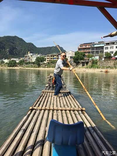 老赵自己开始撑竹筏![]()