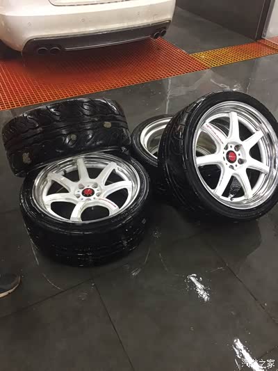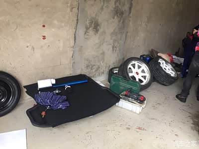 怕路上遇到状况,还是把赛道用的轮毂轮胎换下来,到了再装,轮毂19寸,轮胎255,确实大了,影响操控