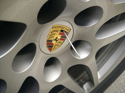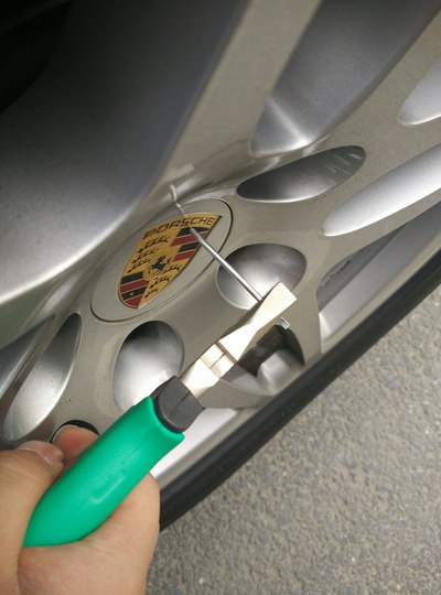 更换彩标,要一个勾状的铁丝,和一把老虎钳。铁丝只要大小合适就行,可以去五金店找也可以就地取材看看有没有合适的,把铁丝插入轮毂盖的一个孔中,老虎钳用力一拔,然后另一个孔重复操作,就可以顺利取下。
