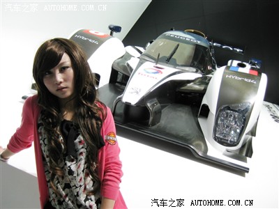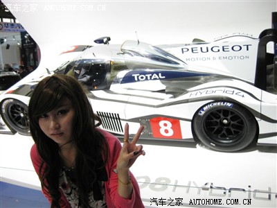 标致油电混合赛车。一眼看上去就很拉风。瞧我老婆兴奋的