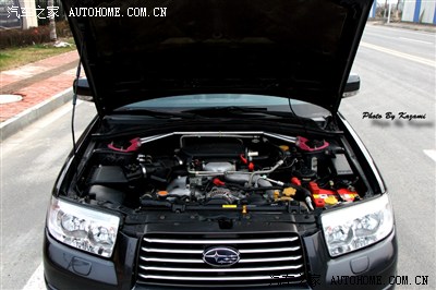 打开机盖看看,大大嘴里面东西真多,顶吧其实不装的话,过弯的侧倾已经非常小了,斯巴鲁森林人从09款开始,似乎重新调教了悬挂~悲哀~~