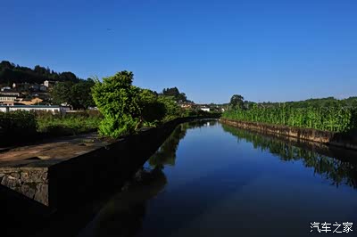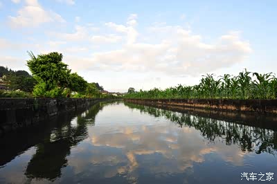 站在洗衣亭的青石板上放眼望去,两边绿色倒影水面,蓝天白云映衬水中,此景不由的让人却步慢慢欣赏,任由思绪在晨光中飞扬