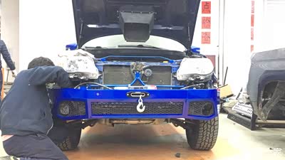 钢铁的前杠,这个花费了不少时间,不要傻大三粗的大铁杠,因此切掉了原车杠一截,在下部接上此杠,够结实能保护车头前部下沉的水箱