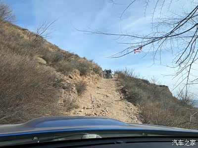 最后这段坡,坡虽不长,碎石多,坡度也不小,而且有3-4个交叉轴,上次有朋友开换了AT胎的老奇骏在这里死活没上去。