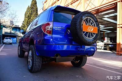7、更大的油箱和备胎架,越野,全尺寸备胎必须有准备,后备箱的备胎位肯定是放不下的,和后杠一体设计做一个备胎支撑架,原备胎位改装成一个副油箱,解决续航能力疲弱的问题。