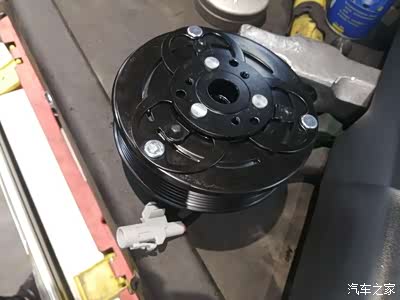 拆开压缩机线路,通电的情况下单独测试压缩机。发现吸盘与压缩机不吸附,诊断为压缩机线圈故障。