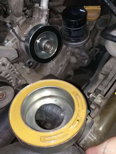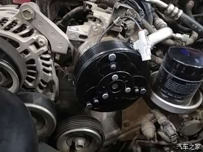 拆卸皮带和压缩机支架,开始做具体检查。