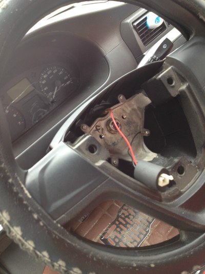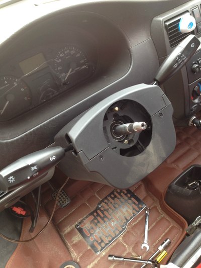 扒开方向盘,就是这样子,扭下螺丝,方向盘抓住3点和9点方向,摇一摇就下来了,安装过程中打了徐师傅好多次电话,每次多是耐心的讲解。