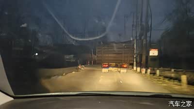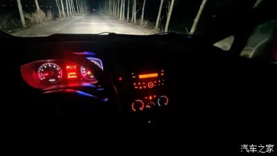 晚上打开车灯,车内中控亮着淡黄色的灯光,看着很舒心。
