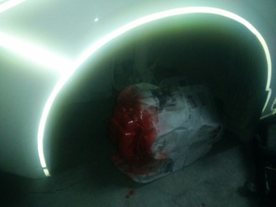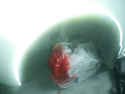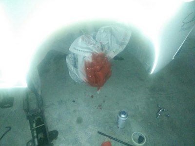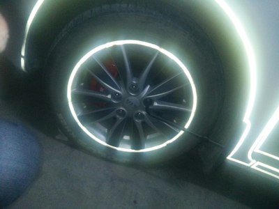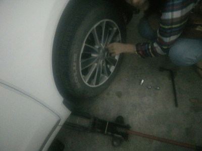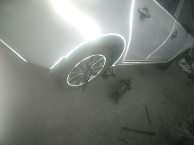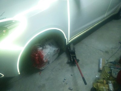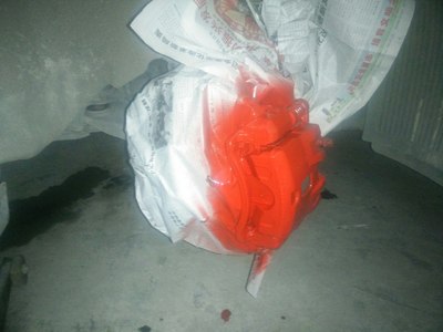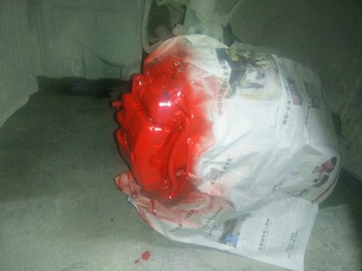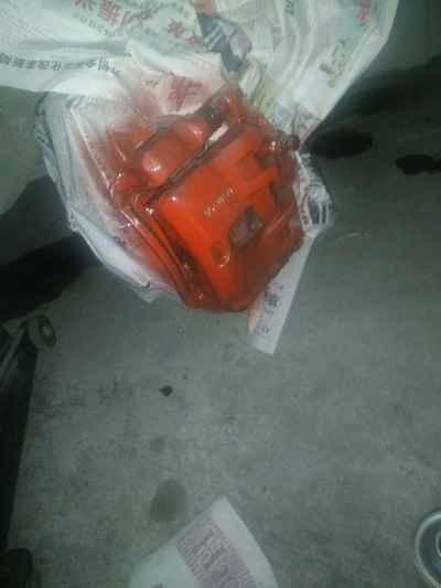 看朋友喷成红色的卡钳 感觉真心好看 心底一直都有想喷的念头 可是一直没动力 昨天看微信发现朋友的弄起来也没想像的那么麻烦 于是一下子跟朋友要了x宝的链接 然后付款等快递。。。今天下午刚到货就洗车 然后跟跑到朋友的店拿了个千斤顶 开搞 废话不说 上图