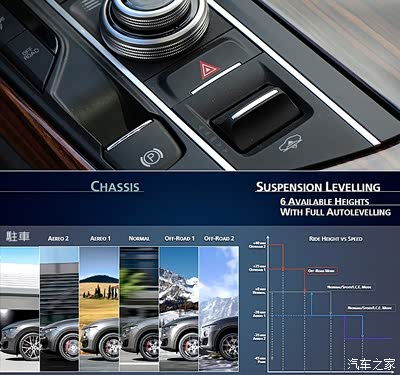 至于为了对应 Off-Road 需求所搭载的 Q4 四轮驱动系统,虽然是源自轿车底盘的设计,所以在正常状况下、前/后扭力分配为 10%:90% (高速巡航时为 0:100%,OFF-ROAD 模式时则从 20%:80%开始),倾向后轮驱动设定。