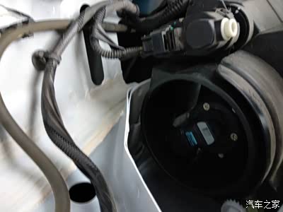 还是一样的把大灯尾部的防尘盖打开,盖子里面很干净,